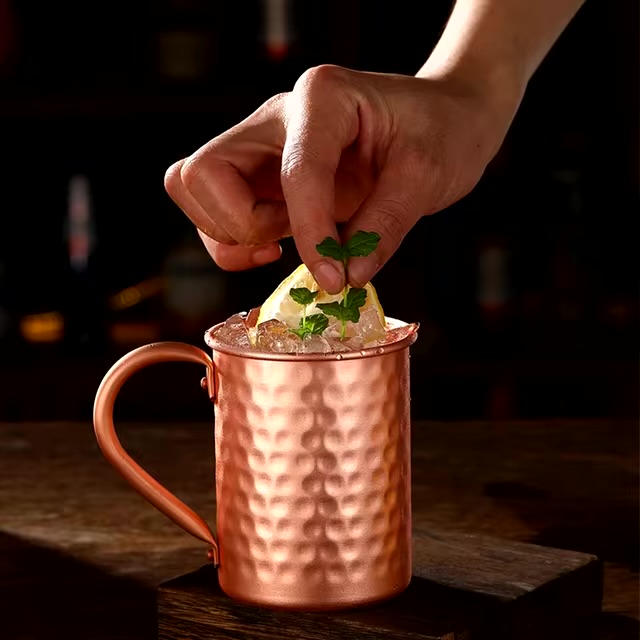 Copper is known to stimulate the production of digestive enzymes, aiding in effective food metabolism and supporting gut health. The antibacterial properties of copper naturally eliminate harmful bacteria, ensuring a cleaner, purer drinking experience. The high thermal conductivity of copper also keeps drinks colder for longer, perfect for enhancing the flavor of your favorite cocktails, like a classic Moscow Mule.